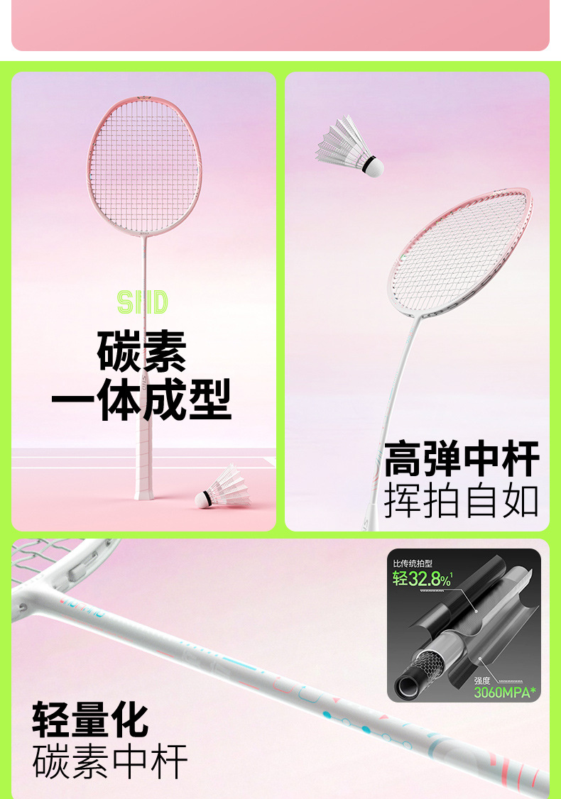 羽毛球拍旗舰店单双拍套装全碳素纤维女生初学者专业耐打